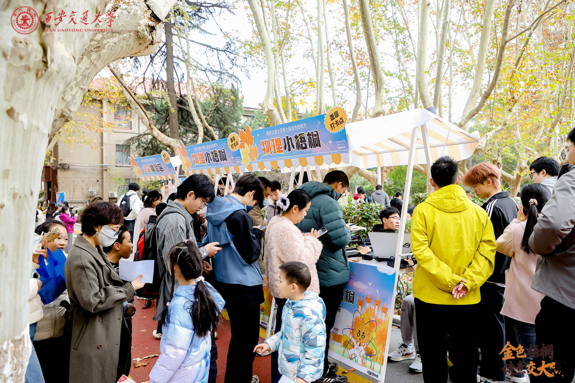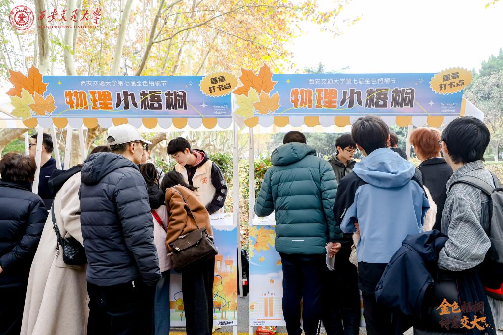 金秋时节,梧桐叶黄,西安交通大学校园迎来了第七届“金色梧桐节”。作为本次梧桐节六大主题打卡点之一,“物理小梧桐”主题打卡点于2025年11月22日至23日精彩亮相,以落叶为媒介,将物理科普与艺术创作巧妙融合,为全校师生呈现了一场兼具知识性与观赏性的科普盛宴,为这场秋日文化盛典增添了独特的科技韵味与人文温度。