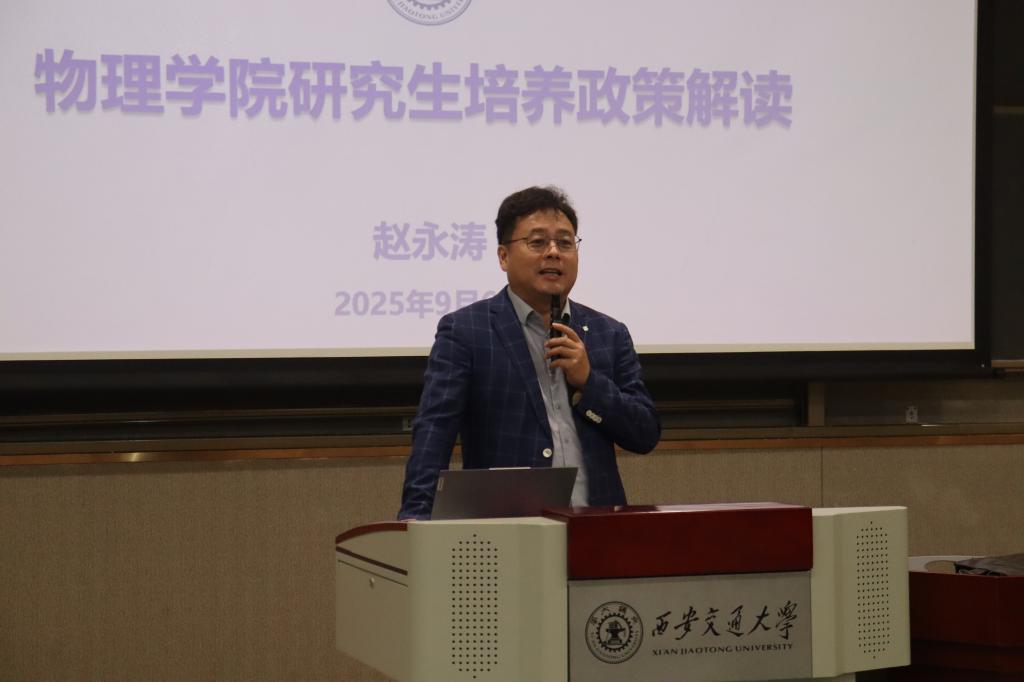 9月6日上午,西安交通大学物理学院2025级研究生开学典礼在创新港涵英楼5-1W103报告厅隆重举行。物理学院党委书记张莹,院长高宏,副院长赵永涛、杨志懋,部分研究生导师以及2025级全体研究生新生200余人齐聚一堂,共同见证这一重要时刻。会议由党委副书记张沛主持。